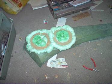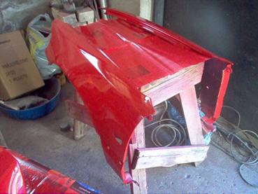 Kojelautaa ja ovia oli aloitettu veivaamaan lasikuidusta, mutta pahasti olivat